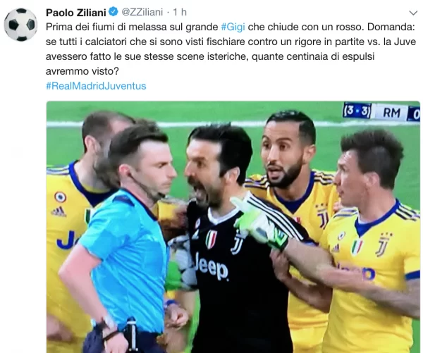 Paolo Ziliani, giornalista de Il fatto Quotidiano, ha voluto porre l’accento sulle polemiche di Buffon nei confronti dell’arbitro, che hanno portato all’espulsione del portiere bianconero.