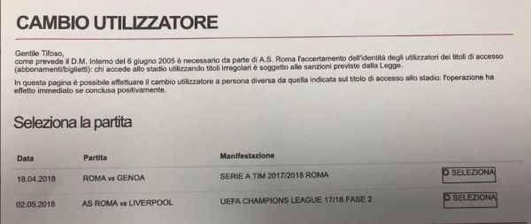 Infatti, il sito dei giallorossi ha messo in vendita i tagliandi per una gara del due maggio, cioè il ritorno della semifinale (che si giocherà prima ad Anfield n.d.r). I tagliandi acquistabili erano quelli della sfida Roma-Liverpool, prima ancora che si conoscesse il risultato del sorteggio.