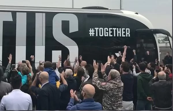 Hanno fatto il giro del web le immagini della scorsa settimana dei supporters azzurri prima della partenza per Torino, ed ora i rivali juventini hanno provato a fare altrettanto prima della partenza della carovana bianconera per Milano, dove domani al San Siro si giocherà Inter-Juve.
