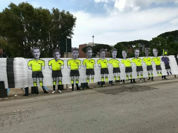 Ieri il San Paolo ha detto la sua, un centinaio di tifosi ha organizzato una protesta pacifica all’esterno del San Paolo, con un lungo striscione su cui erano affissi i volti di tutti gli arbitri di Serie A, urlando cori accusatori come “Compra gli arbitri” e “Orsato gonfia la rete”.