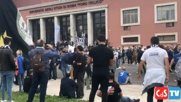 La rivalità tra Napoli e Juventus non conosce luogo nè tempo. I colleghi del Corriere dello Sport hanno pubblicato delle immagini di alcuni tifosi della Juventus a Roma, poche ore prima della finale di Coppa Italia, che intonano un coro già sentitosi a Firenze in occasione di Fiorentina-Napoli.