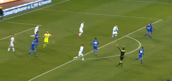 Presumibilmente, i supporters liguri ricordano l’episodio che lo vide coinvolto nella gara di ritorno dello scorso anno, quando il difensore Matiàs Silvestre venne espulso per un intervento di disturbo sul rinvio del portiere.
