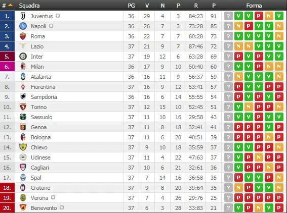 Spal e Crotone occupano entrambe il terzultimo posto, ma ad oggi ad essere salva sarebbe la Spal in virtù degli scontri diretti a favore (1-1 e 2-3). Dunque per il Crotone sarà necessario fare punti nell’ultima gara al San Paolo contro il Napoli. La Spal invece giocherà l’ultima in casa contro la Sampdoria. Ovviamente sono a rischio retrocessione anche Cagliari, Chievo e Udinese.