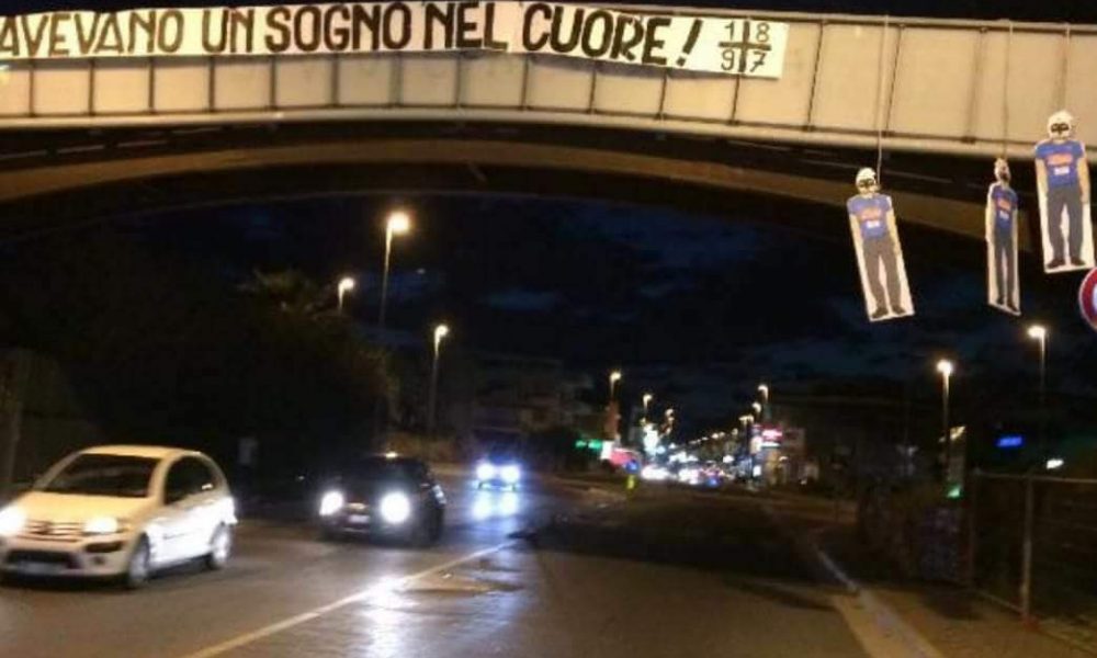 Infatti, pare che alcuni tifosi della Juventus, per sbeffeggiare i rivali napoletani, abbiano calato tre manichini con tanto di maglia del Napoli e maschera di pulcinella simulando la loro impiccagione. Inoltre campeggia anche uno striscione che recita: “Avevano uno striscione nel cuore!“.