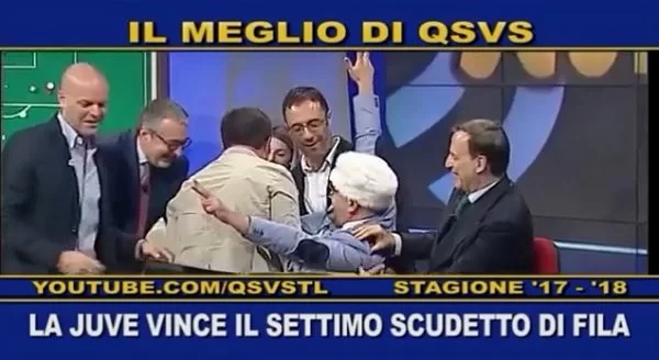 La Juventus ha vinto il campionato di Serie A e le reazioni sono state tantissime. Anche negli studi di Telelombardia si è festeggiato, con i tifosi di Inter, Milan e Roma che però hanno inneggiato al Napoli, ritenuto campione morale del campionato.