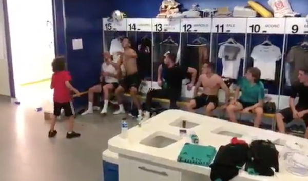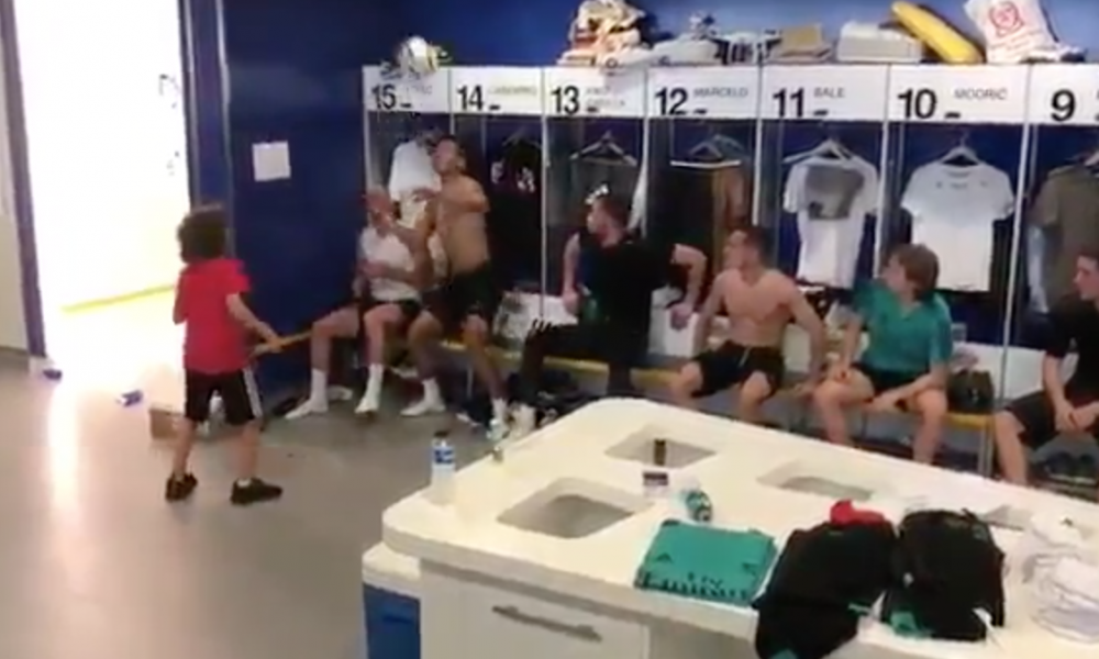 Come mostra, infatti, un video postato sul profilo Instagram del Real Madrid, un tocco a testa per i calciatori madrileni, seduti, che hanno scambiato con il giovane brasiliano, il quale ha mostrato grande precisione nel colpo di testa, concludendo, poi con un canestro all’interno di un contenitore di magliette.