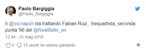 Il giornalista di Premium Sport, Paolo Bargiggia, ha pubblicato sul suo profilo Twitter un messaggio che riguarda il mercato del Napoli.