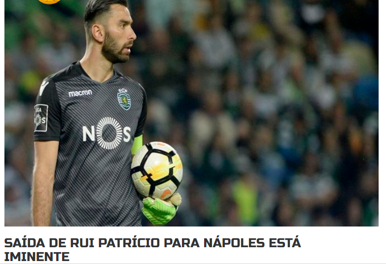 Il trasferimento di Rui Patricio al Napoli sembra imminente. È quanto filtra dal Portogallo, più precisamente dal noto quotidiano A Bola. Secondo quanto rivela il giornale portoghese, sulla propria edizione online, il portiere sarebbe in procinto di lasciare lo Sporting.