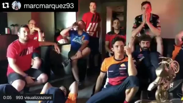 Tantissimi gli spettatori del match, tra questi c’era anche il campione della Moto GP, Marc Marquez, che – come dimostra un video pubblicato sul web – non prende benissimo l’eliminazione della Nazionale iberica.