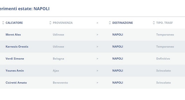 Sono Alex Meret e Orestis Karnezis i due nuovi estremi difensori del Napoli, da ieri ufficialmente di proprietà della società partenopea, avendo firmato il contratto con il patron Aurelio De Laurentiis nella sede della Filmauro. Entrambi i portieri sembravano essere stati acquistati a titolo definitivo, ma dal sito della Lega emerge una novità: entrambi sono arrivati a titolo “Temporaneo”. In teoria si tratterebbe dunque di un’operazione in prestito con obbligo di riscatto.