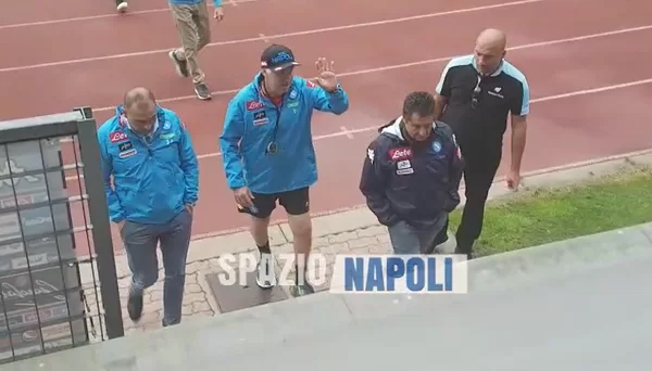 Al termine del primo allenamento a Dimaro, Carlo Ancelotti ha lasciato il campo di Carciato per recarsi negli spogliatoi. Per farlo è passato sotto la tribuna occupata dai tifosi azzurri che lo hanno omaggiato con il classico coro “Sarò con te”.