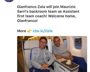 Coppia tutta italiana sulla panchina dei blues, il Chelsea accoglie Gianfranco Zola attraverso il suo profilo Twitter: “Una volta blu, sempre blu! Gianfranco Zola si aggiungerà alla squadra di Maurizio Sarri come vice allenatore! Bentornato a casa Gianfranco!”.