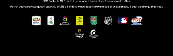 In più, puoi guardare anche La Liga, la Ligue 1, la Coppa di Lega Inglese, la Coppa D’africa Delle Nazioni, la Copa Libertadores, la PDC Darts, la MLB, la NHL, e se non ti basta ci sarà ancora molto altro.