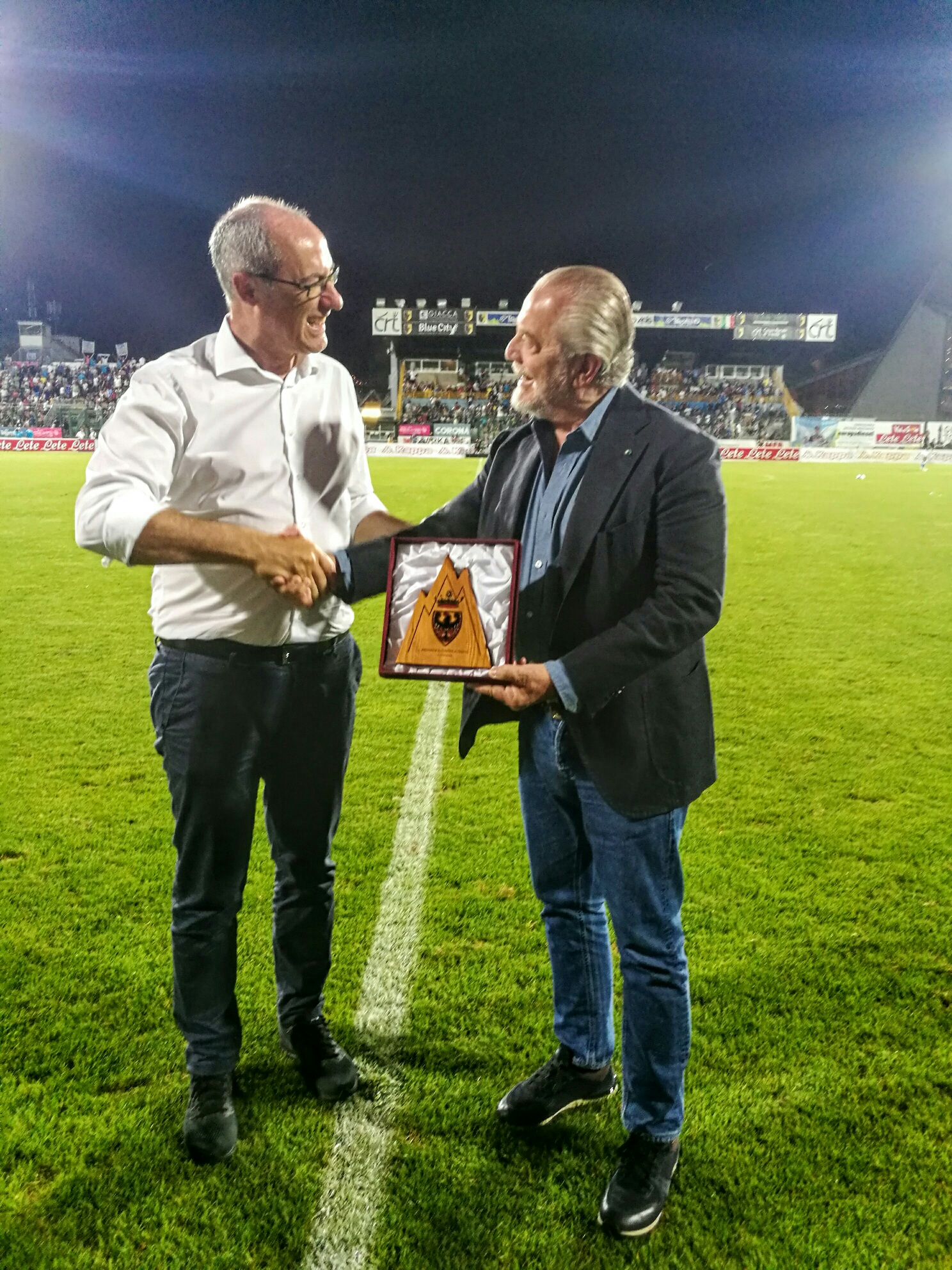Nell’intervallo della sfida contro il Chievo, giocatasi domenica 29, il presidente De Laurentiis ha ricevuto un omaggio da Ugo Rossi, Presidente della Provincia Autonoma di Trento, che gli ha consegnato l’Aquila di San Venceslao, il riconoscimento che il Trentino consegna agli ospiti illustri.