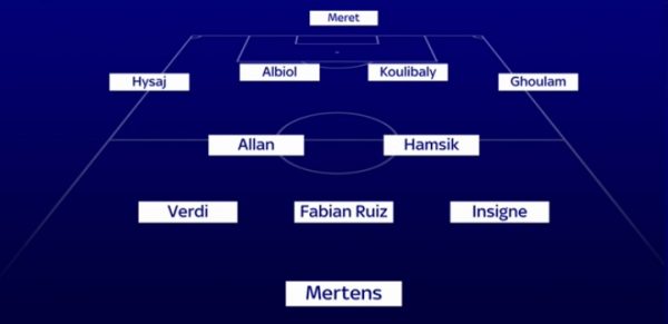 In questa soluzione interessante notare come in mediana vengano lasciati Allan e Hamsik, per garantire il giusto mix tra muscoli e qualità. Mentre in avanti c’è un quartetto abbastanza leggero ma dalle spiccate doti tecniche formato da Verdi, Fàbian Ruiz e Insigne dietro la prima punta Mertens. Da capire se Ancelotti proverà anche questa interessante soluzione a breve.