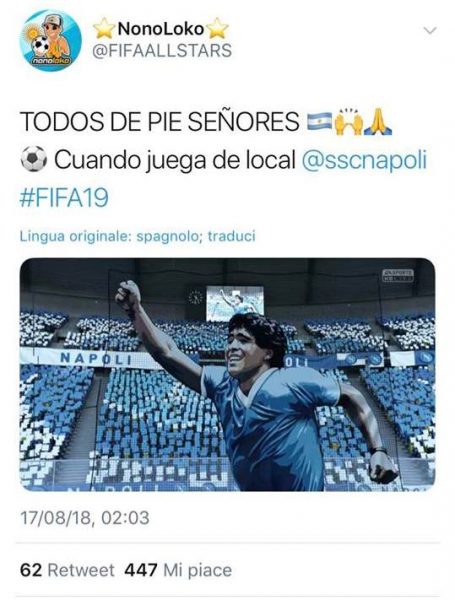 Il ragazzo tramite un tweet ha svelato che all’interno del gioco, quando il Napoli giocherà in casa, apparirà l’immagine di Maradona come coreografia dei tifosi azzurri!