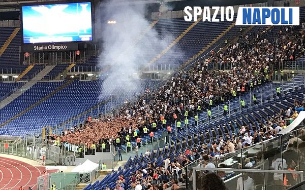 Singolare forma di protesta dei tifosi del Napoli, che hanno fatto il proprio ingresso solo nel secondo tempo della gara all’Olimpico con la Lazio.