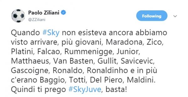 Il giornalista Paolo Ziliani ha così ironizzato su Twitter, ricordando che la Serie A in passato ha già visto fior fiori di campioni: “Quando #Sky non esisteva ancora abbiamo visto arrivare, più giovani, Maradona, Zico, Platini, Falcao, Rummenigge, Junior, Matthaeus, Van Basten, Gullit, Savicevic, Gascoigne, Ronaldo, Ronaldinho e in più c’erano Baggio, Totti, Del Piero, Maldini. Quindi ti prego #SkyJuve, basta!“.