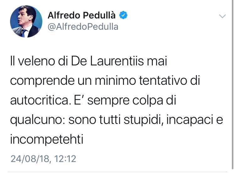 “Il veleno di De Laurentiis mai comprende un minimo tentativo di autocritica. Sempre colpa di qualcuno: sono tutti stupidi, incapaci e incompetenti” – ha scritto il noto giornalista su Twitter.