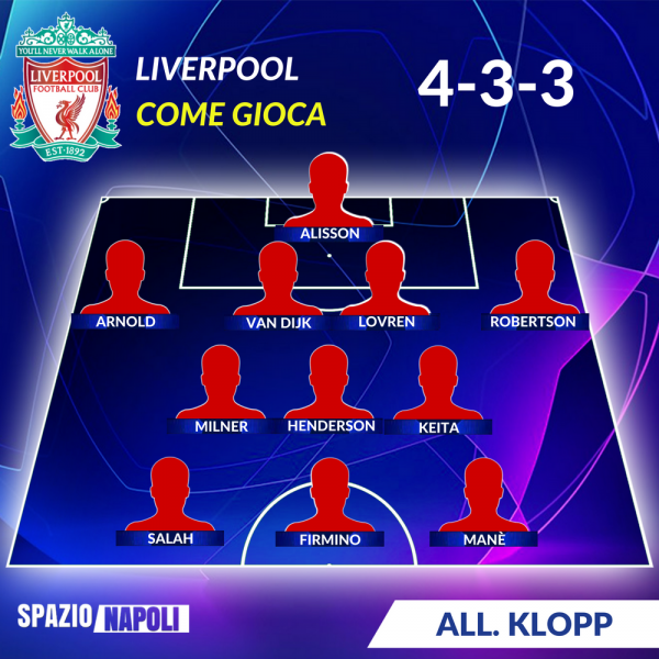 Se nella scorsa edizione Karius fu protagonista in negativo, quest’anno il tecnico tedesco potrà preoccuparsi di meno. Allison Becker arrivato dalla Roma è uno tra i portieri più forti in circolazione e darà tanta sicurezza al reparto difensivo. Quest’ultimo è di consueto composto da Arnold a destra, Van Dijk e Lovren centrali e Robertson a sinistra. La mediana è di solito affidata a Henderson, mentre ai suoi lati agiscono Milner e Keita, altro acquisto importante della sessione estiva di calciomercato. Salah, Firmino e Mané compongono un reparto offensivo a dir poco stellare. Il punto di forza di questa squadra è il contropiede, a tratti davvero devastante, considerando la velocità degli attaccanti a disposizione di Klopp. Di sicuro il reparto difensivo è quello che da meno sicurezze a causa della poca esperienza, soprattutto in campo europeo, dei giovani calciatori che occupano le posizioni della difesa dei reds.