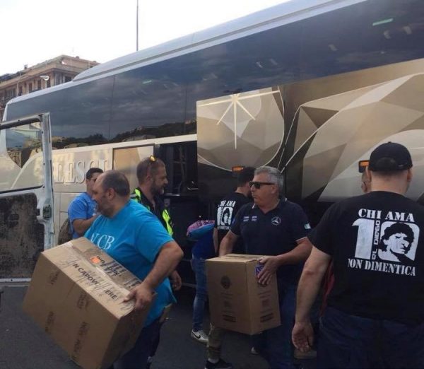 A testimoniarlo è il collega Sandro Ruotolo, che ha pubblicato su Facebook la foto dei tifosi intenti a consegnare dei pacchi alla Protezione Civile.