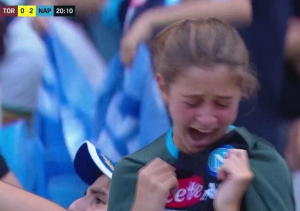 Sì, avete capito bene: parliamo della ragazza inquadrata ieri dalle telecamere, nel match tra Torino e Napoli, dopo la rete del raddoppio firmato da Simone Verdi (GUARDA QUI IL VIDEO). In poche ore i suoi semplici gesti sono entrati nei cuori di tutti. Prima esulta, poi evidenzia e tira la maglia che indossa (la nuova t-shirt della linea passeggio, ndr), per poi esultare ancora ed infine lanciare uno sguardo, quasi commosso, al simbolo del Napoli. Gesti semplici, ma genuini. L’incarnazione del tifo nel suo stato più passionale.