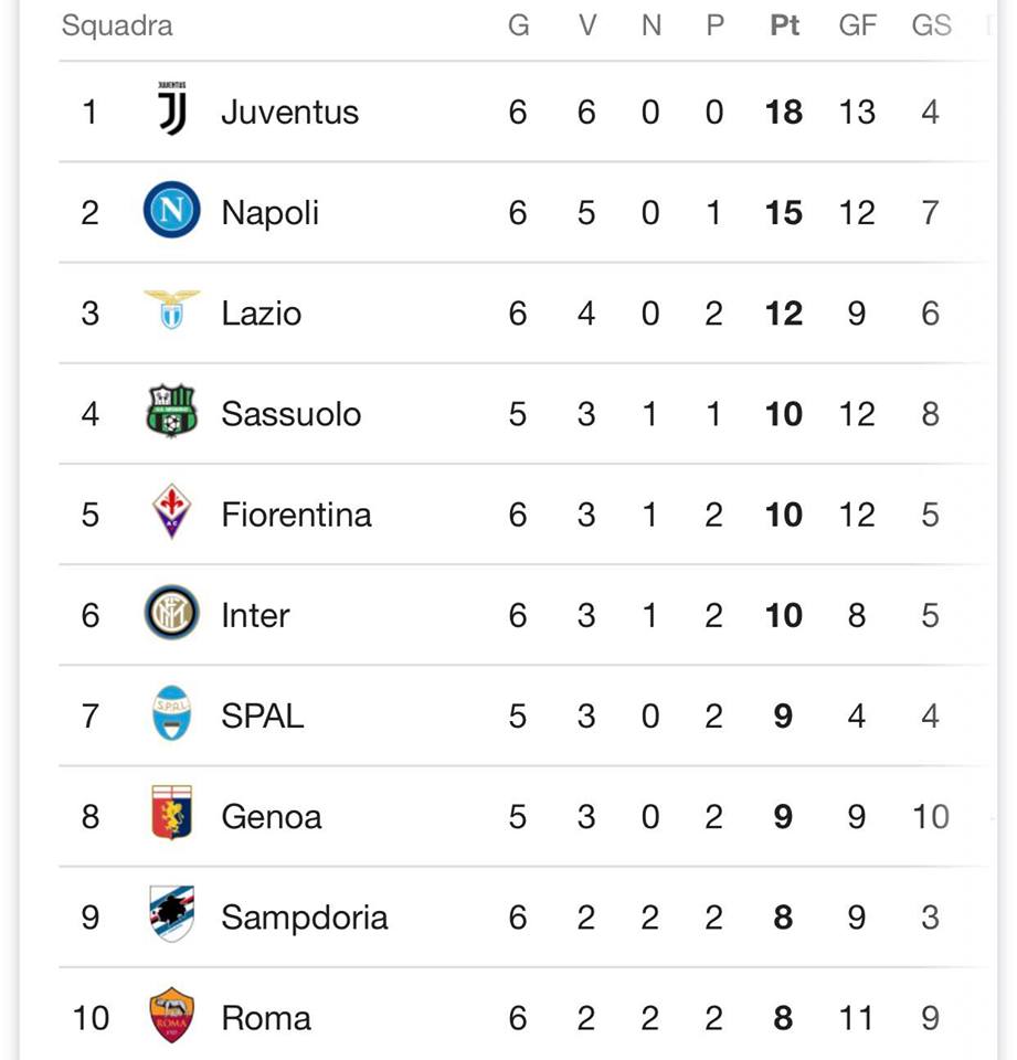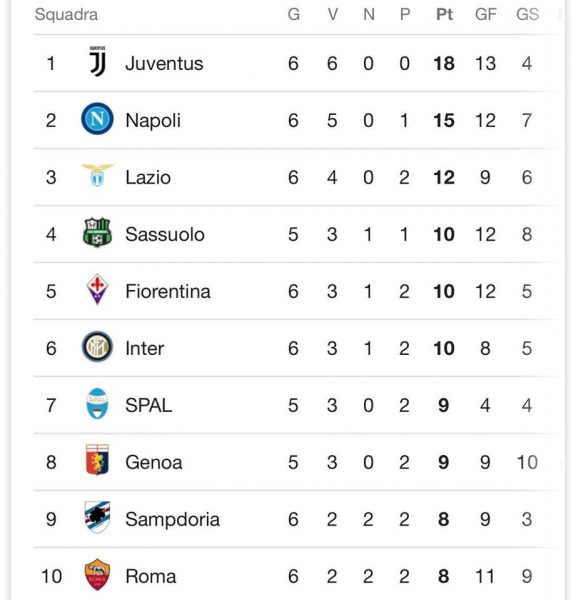 Adesso la classifica vede i bianconeri a 18 punti e gli azzurri a quota 15. La battaglia è aperta e Juve-Napoli è praticamente già iniziata.