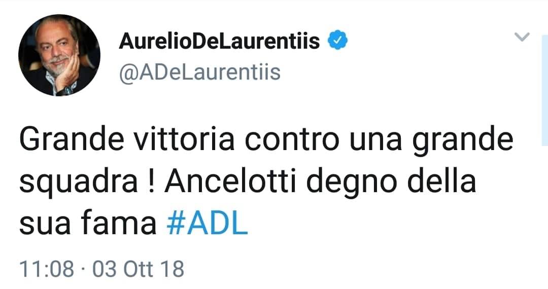 Il patron ha commentato gioiosamente tramite il suo profilo Twitter: “Grande vittoria contro una grande squadra. Ancelotti degno della sua fama” – ha scritto il patron.