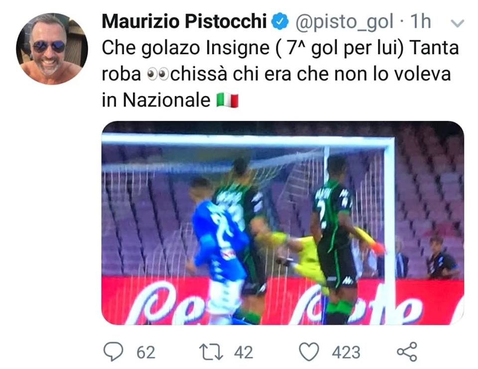 Chi ci tiene a sottolinearlo è Maurizio Pistocchi, noto giornalista, che commenta la prestazione di Insigne così su Twitter: