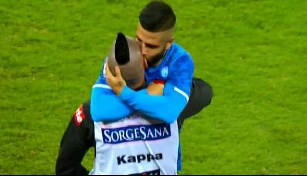 Ebbene, l’esultanza di Insigne è principalmente rivolta alla panchina. Lì è seduto non solo un compagno di squadra, ma un amico: il capitano Hamsik. Dunque Lorenzo corre forte verso di lui e, saltandogli in braccio, concede un fortissimo, e ricambiato, abbraccio. E un bacio che consolida ancor di più il loro rapporto, dentro e fuori dal campo. E allora, tra complimenti, critiche e opinioni, tutto per un attimo si arresta, si spegne, per dare spazio al momento in cui emerge pienamente la solidarietà e il bene puro.