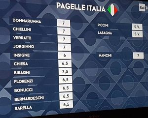 Insigne ha disputato una partita importante colpendo in pieno una traversa e favorendo spesso gli inserimenti di Chiesa e Bernardeschi. Ad ogni modo “il Magnifico” non è ancora riuscito ad esprimersi al meglio della sua possibilità con la maglia della nazionale. Un voto inferiore a quello dei suoi compagni di squadra può essere interpretato come uno stimolo per fare meglio, ma di certo in questa partita non è parso come il peggiore in campo.
