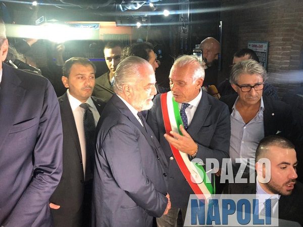 Aurelio De Laurentiis presente all’inaugurazione del Napoli Club Solopaca a lui intitolato. Tantissimi i tifosi accorsi per acclamare il patron azzurro.