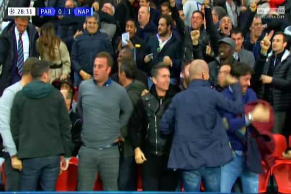 Una prima frazione meravigliosa per gli uomini di Ancelotti. 0-1 il parziale a Parigi, grazie alla rete di Insigne. Al gol del 24 di Frattamaggiore è esploso il settore ospiti, con i napoletani che non hanno potuto contenere la loro gioia.