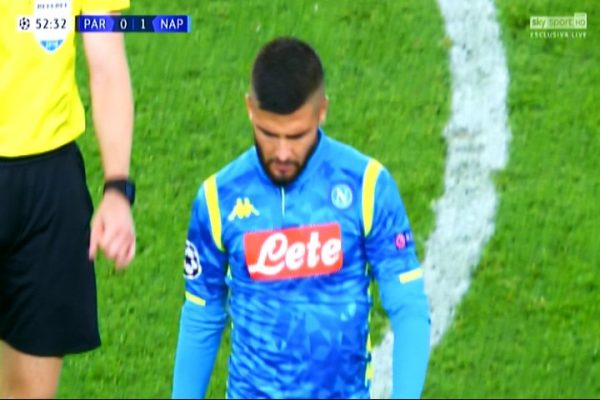 Problemi allo sterno per Lorenzo Insigne che negli spogliatoi, al termine del primo tempo, ha avuto anche alcune difficoltà a respirare correttamente. L’infortunio è una conseguenza di una botta subita quasi al termine della prima parte del match.