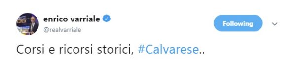 Nemmeno il giornalista Enrico Varriale ha risparmiato critiche all’arbitro Calvarese: “Corsi e ricorsi storici, #Calvarese…“.