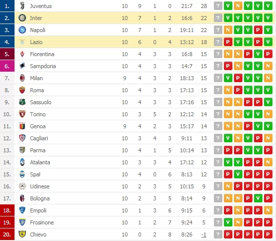 La squadra di Spalletti, però, è avanti per differenza reti. Questa la classifica: