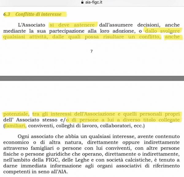 “Conflitto d’interesse: L’associato si deve astenere dall’assumere decisioni, anche mediante la sua partecipazione alla loro adozione, o dallo svolgere qualsiasi attività, dalle quali possa risultare un conflitto, anche potenziale, tra gli interessi dell’Associazione e quelli personali propri dell’Associato stesso e/o di persone a lui a diverso titolo collegate (FAMILIARI, conviventi, colleghi di lavoro, collaboratori, ecc.)“.