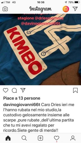Infatti, come ha rivelato lui stesso sui social, è stato derubato di due preziosissimi cimeli: la maglia e le scarpette di Dries Mertens, oggetti regalategli dallo stesso attaccante dopo l’ultima gara dello scorso anno. Evidente il rammarico di D’Avino nel messaggio pubblicato su Instagram.