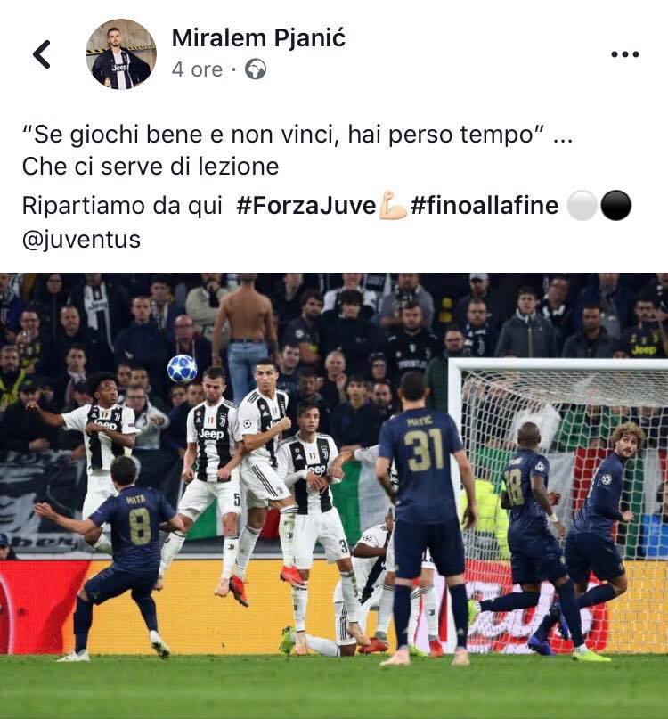 Miralem Pjanic, centrocampista della Juventus, ha commentato attraverso un post sui suoi canali social la sconfitta subita ieri a Torino contro il Manchester United. I bianconeri, nonostante abbiano disputato un’ottima gara creando azioni d’attacco per quasi l’intera partita, sono crollati a dieci minuti dalla fine.