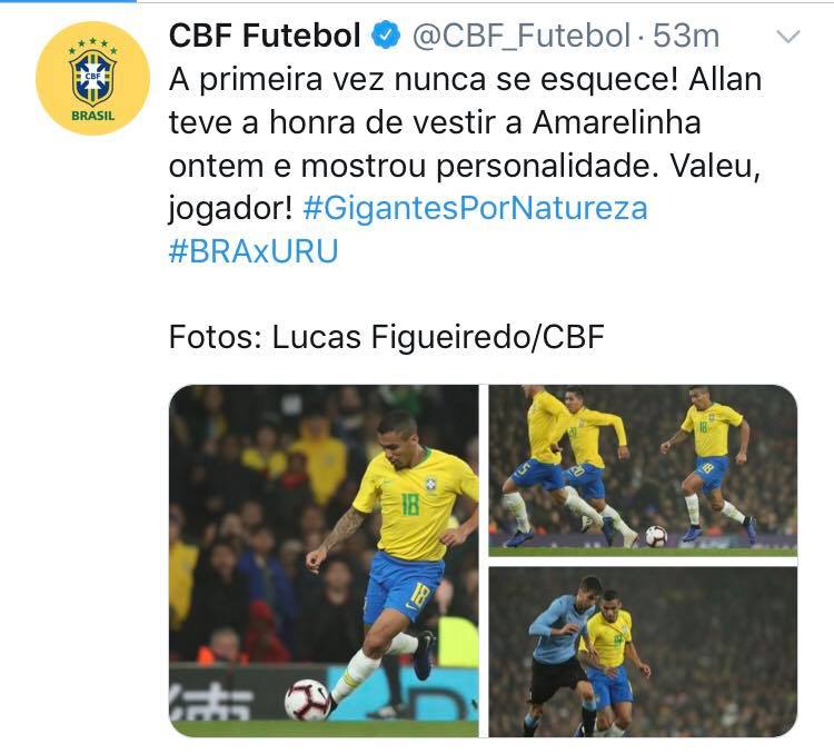 “La prima volta non si scorsa mai. Allan ha avuto il grande onore di vestire l’Amarelinha mostrando personalità”.