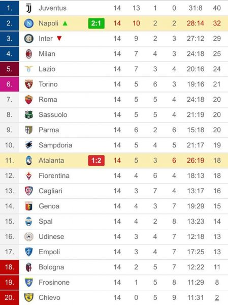 Il Napoli resta in scia Juve, tornando nuovamente a meno 8 e nel frattempo riesce a staccare di altre due lunghezze sull’Inter, che ieri si è fermata sul 2-2 all’Olimpico contro la Roma. La classifica ora recita Juve 40, Napoli 32, Inter 29 e Milan 25. Questo per quanto riguarda la zona Champions.