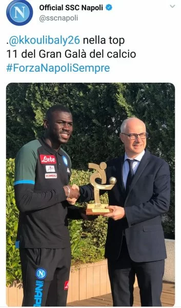 Il difensore azzurro è stato celebrato dal Napoli da un tweet sull’account ufficiale della società partenopea, in cui riceve il prestigioso premio.