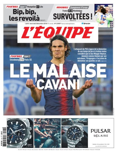 Questa sua situazione la sottolinea anche L’Equipe: in seguito all’esclusione per 90 minuti nella gara contro il Bordeaux, Cavani sembra lamentarsi del suo impiego e si sente meno considerato della coppia formata da Neymar e Mbappé. Ancora dalla Francia lanciano un segnale: “Aspetterà la primavera per decidere il suo futuro”.