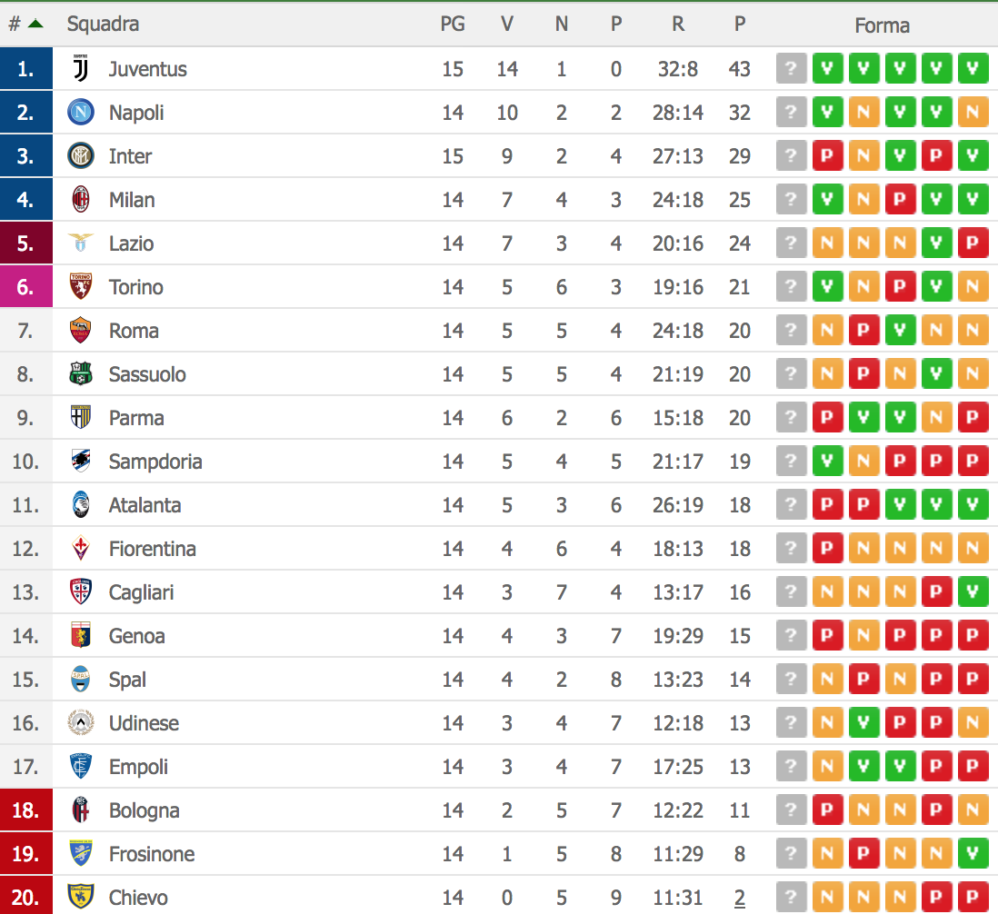 Con questo successo (14 su 15 partite, ndr) i bianconeri allungano ancora in classifica, con il Napoli che può tornare a -8 battendo il Frosinone. Inoltre in caso di successo, gli azzurri potrebbero staccare proprio l’Inter e blindare il secondo posto.