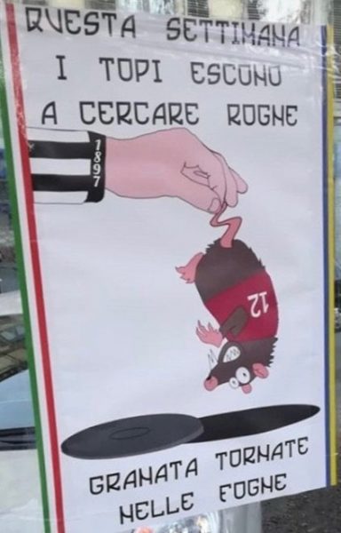 Lo scorso 11 dicembre per le vie di Torino sono comparsi diversi striscioni denigratori indirizzati al Torino ed ai suoi tifosi. I manifesti esposti contro il tifo granata recitavano: “Questa settimana i topi escono a cercare rogne. Granata tornate nelle fogne”.