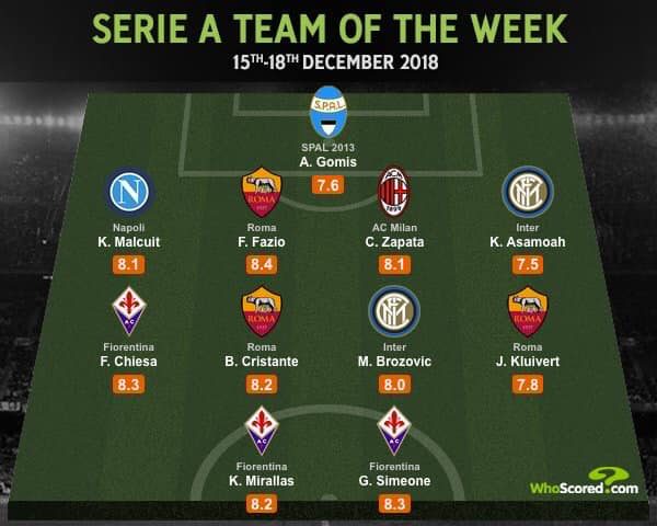 Kevin Malcuit stupisce partita dopo partita, questa volta il terzino destro azzurro è stato inserito nella squadra della settimana dal portale online WhoScored.com. Ecco gli undici che si sono guadagnati un posto nella top 11 dell’ultimo turno di campionato: