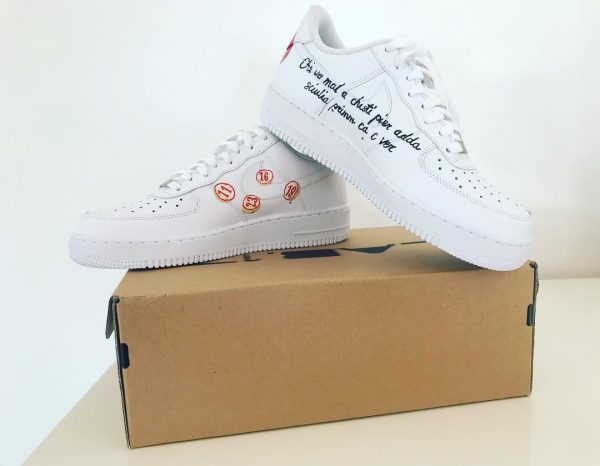 Maggio si è fatto commissionare un paio di scarpe raffiguranti sui lati le immagini del Golfo città, di Pulcinella e di una scritta molto divertente in dialetto “Chi vol mal a chistì pier, adda sciulià primm ca c ver“.