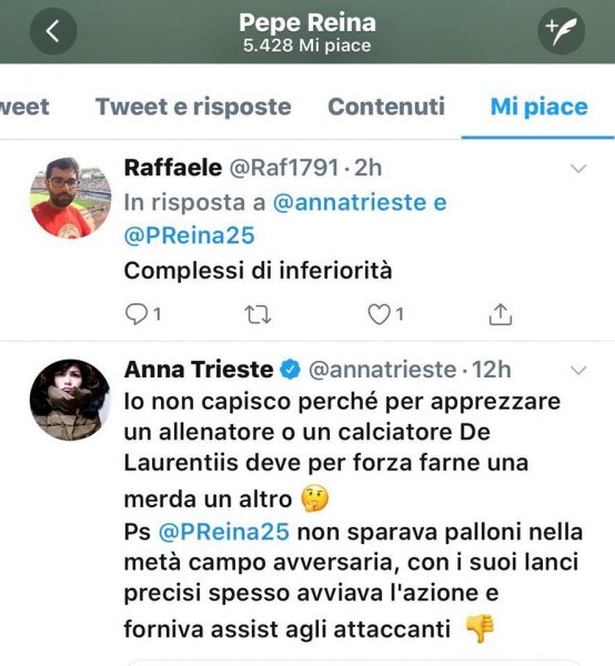Tra questi commenti c’è anche qualche “mi piace” di Reina ad alcuni messaggi di difesa per il portiere su Twitter: