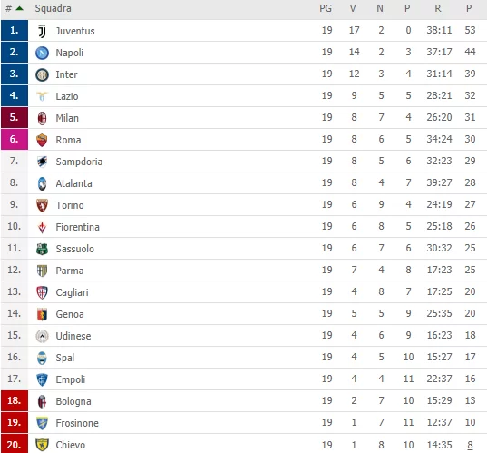 3 punti fondamentali anche per la roma che vince 2-0 contro il Parma con le reti di Cristante e Under. I giallorossi salgono a quota 30, a + 1 dalla Sampdoria e a -2 dalla Lazio, fermata sull’ 1-1 all’Olimpico contro il Torino. Alla rete di Belotti per gli ospiti ha risposto un eurogoal di Milinkovic Savic.