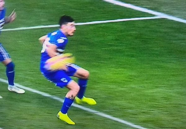 «Se nel primo caso Maresca è intervenuto a segnalare un chiaro ed evidente errore nel non aver assegnato il rigore, in questo caso interviene per segnalare come chiaro ed evidente errore un rigore fischiato. Questo rigore è inesistente per diversi motivi. Ci sono almeno due motivi per i quali il calcio di rigore non sussiste. Il primo: il braccio è aderente al corpo. Più vicino di così è impossibile. Il secondo: il pallone è inaspettato dato che spunta all’improvviso dopo essere stato mancato dai calciatori davanti a Ferrari di un paio di metri scarsi».